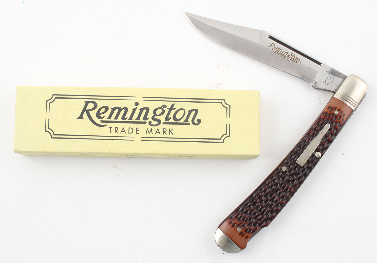 Remington folding knife, 1992 bullet knife, 4'' blade, one R-1253. Grade: Excellent ++ - Value: 50 to 100