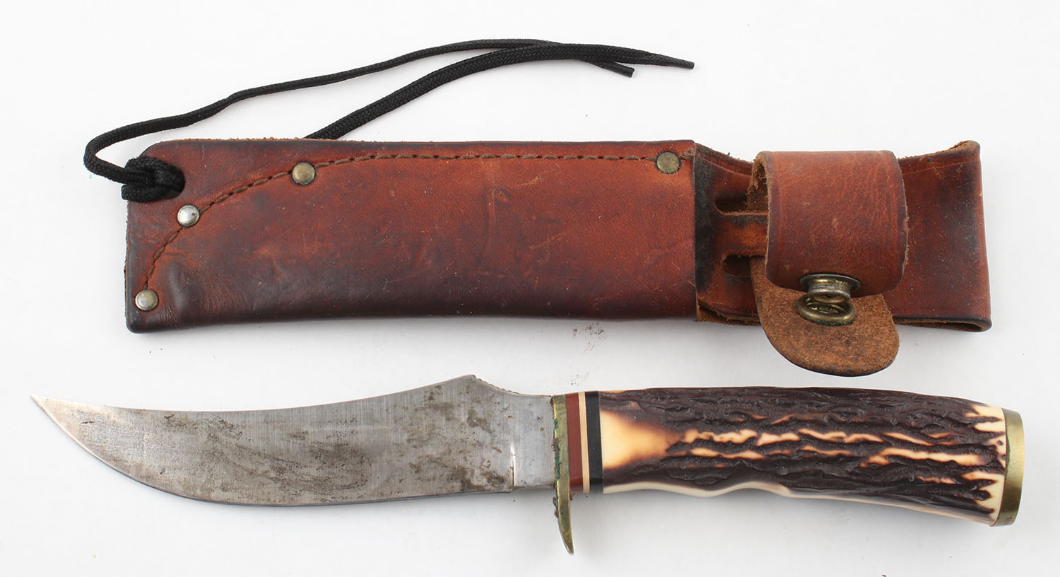 Schrade fixed blade knife, has sheath, 5'' blade. Grade: Excellent - Value: 40 to 80