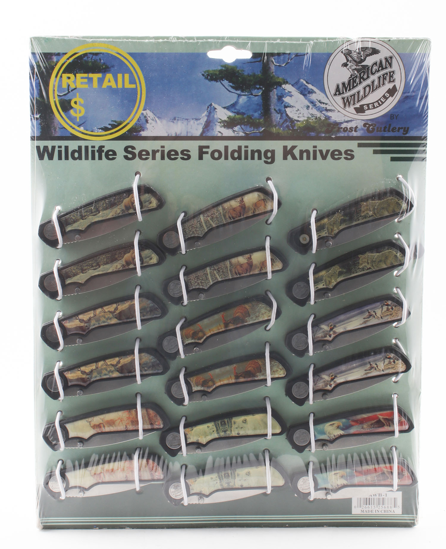 American Wildlife series by Frost Cutlery, folding knife set. Grade: Excellent ++ - Value: 40 to 100