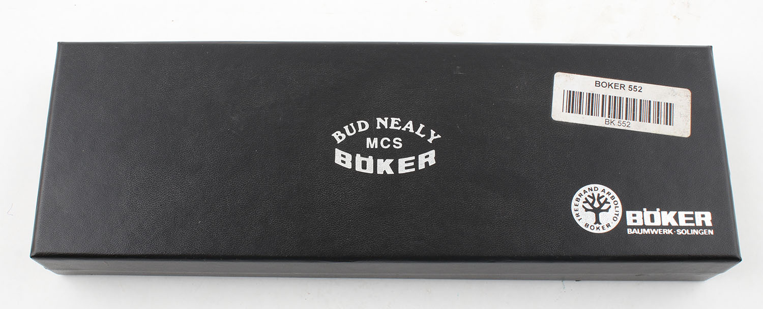 Boker fixed blade knife, in original case, 3'' blade, all bright and clean. Grade: Excellent ++ - Value: 30 to 90