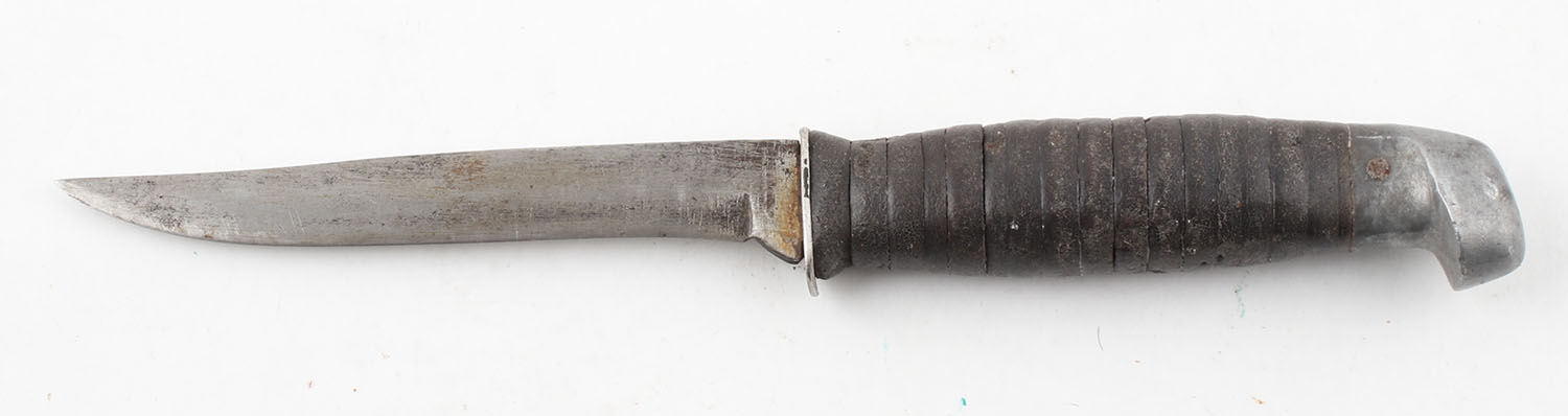 Old Hunting knife fixed blade leather spacers handle, 8.5''. Grade: Very Good - Value: 20 to 100