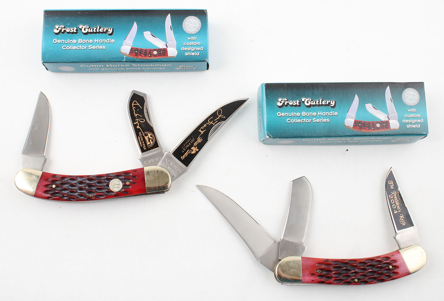 Lot of 2 Frost Cutlery folding knives, in orignal boxes. Grade: Excellent ++ - Value: 16 to 90