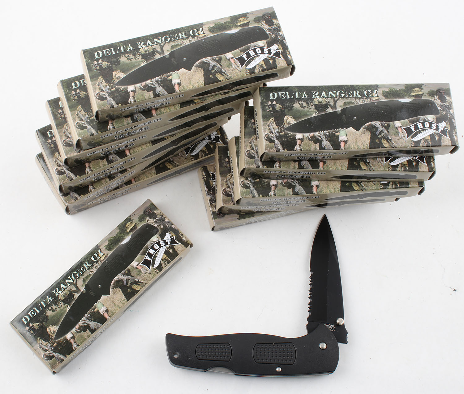 Case of 12 Frost Delta Ranger III folding blade knives, all solid. Grade: Excellent ++ - Value: 40 to 150