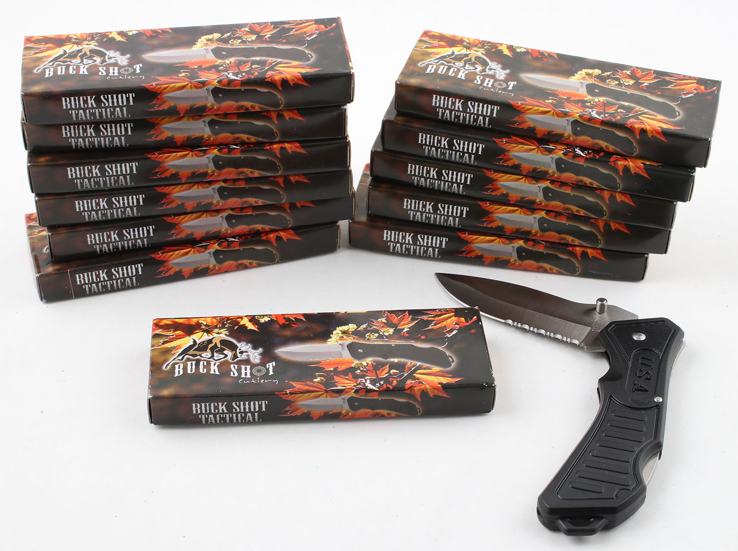 lot of 2 Case of 6 BuckShot folding blade knives, all solid. Grade: Excellent ++ - Value: 30 to 90