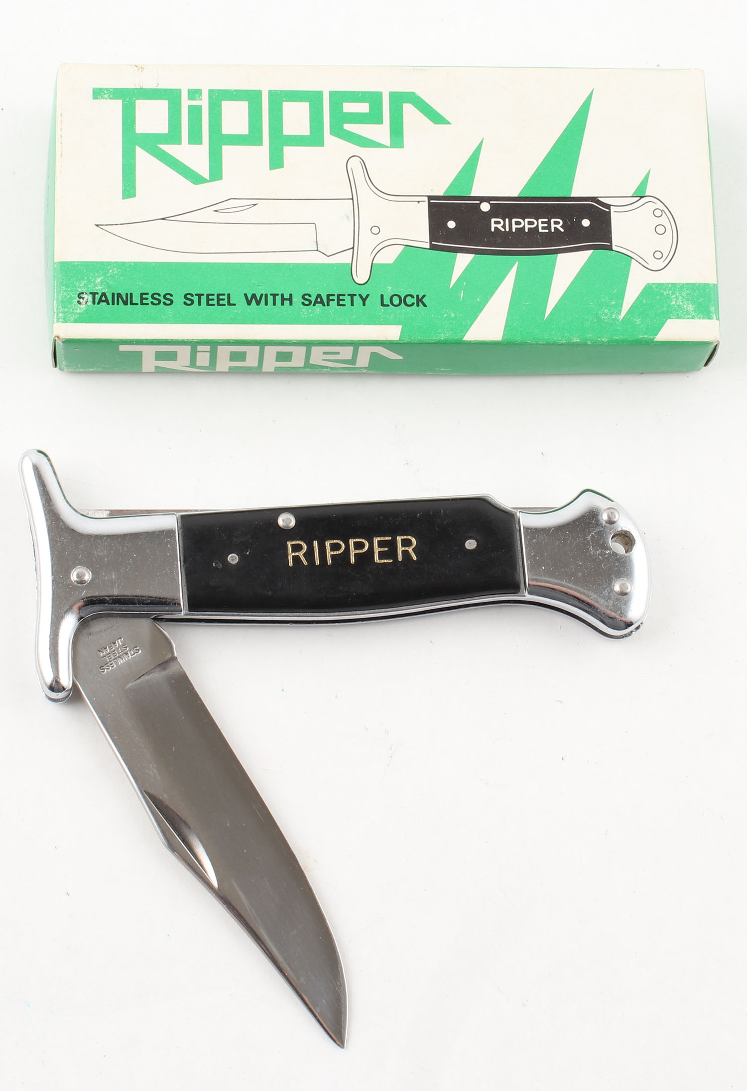 Ripper folding blade knife, in original box, all solid. Grade: Excellent - Value: 16 to 50