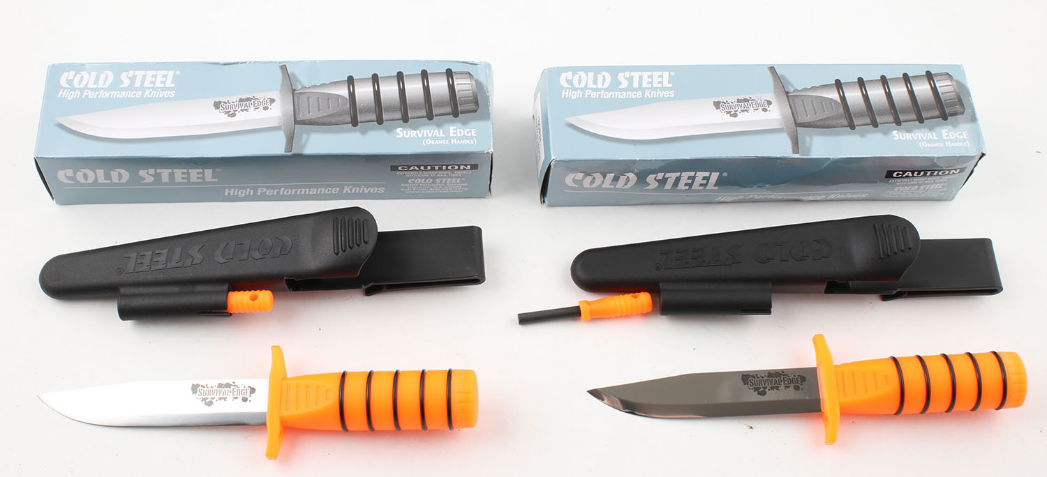 Lot of 2 Cold Steel Survival Edge knife, 5'' blade, has sheath and orignal cardboard box. Grade: Excellent ++ - Value: 16 to 50