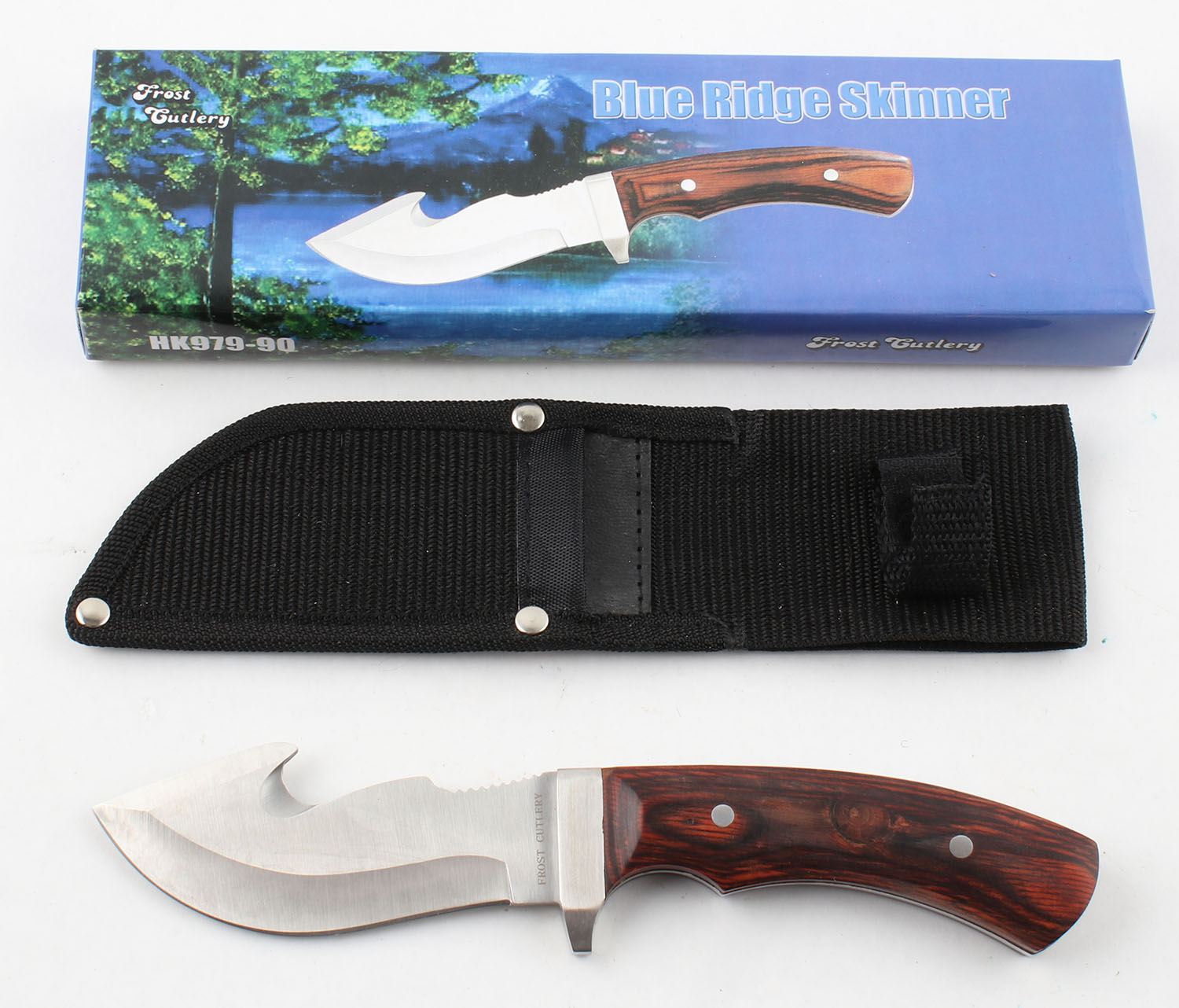 Frost Cutlery Blueridge skinner knife, 4'' blade, has sheath and orignal cardboard box. Grade: Excellent ++ - Value: 10 to 50