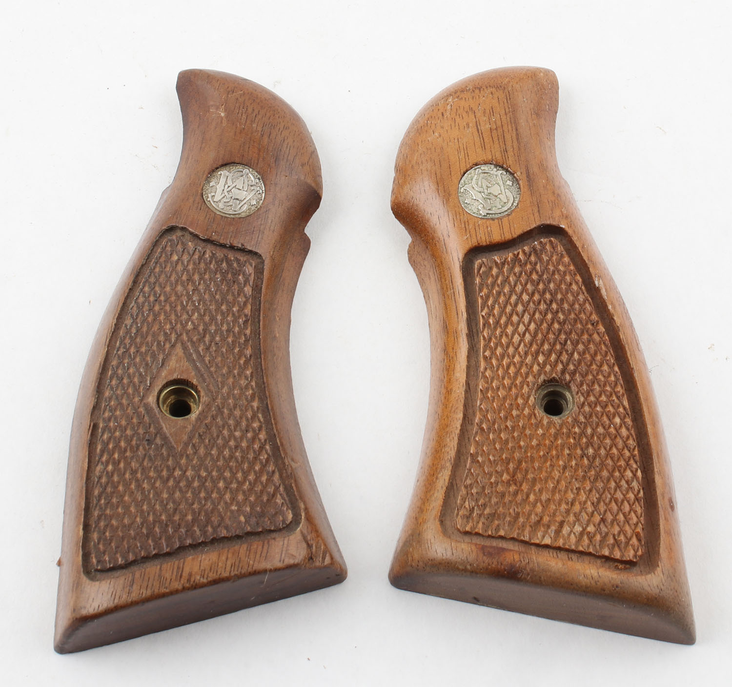 S&W Checkered wood pistol Grips. Grade: Excellent - Value: 20 to 100