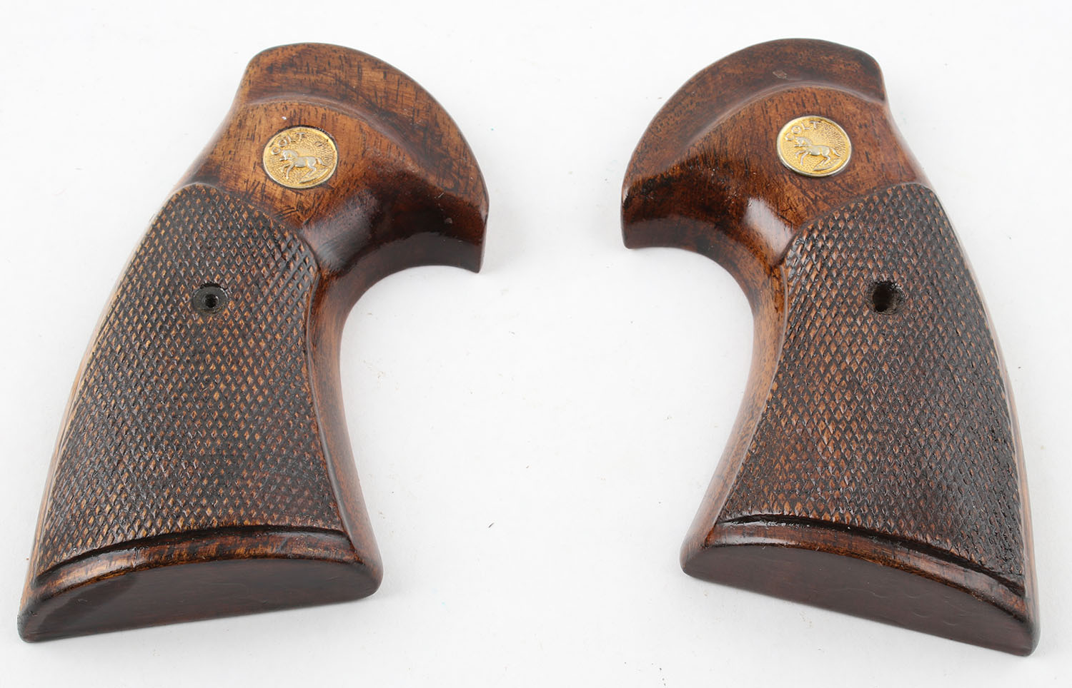Colt Checkered wood pistol Grips. Grade: Excellent - Value: 40 to 100