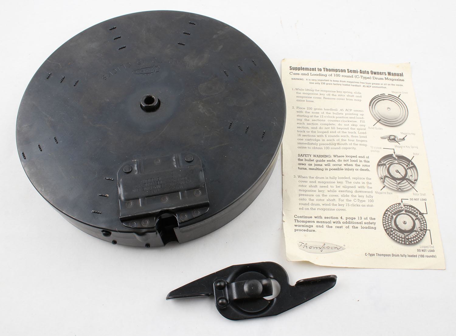 Thompson C-type drum mag, 100 rd., cal .45. Grade: Excellent - Value: 50 to 150