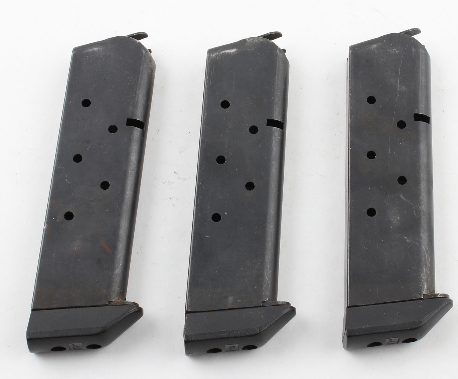 Lot of 3 1911 45 cal pistol mags with pads. Grade: Excellent + - Value: 30 to 90