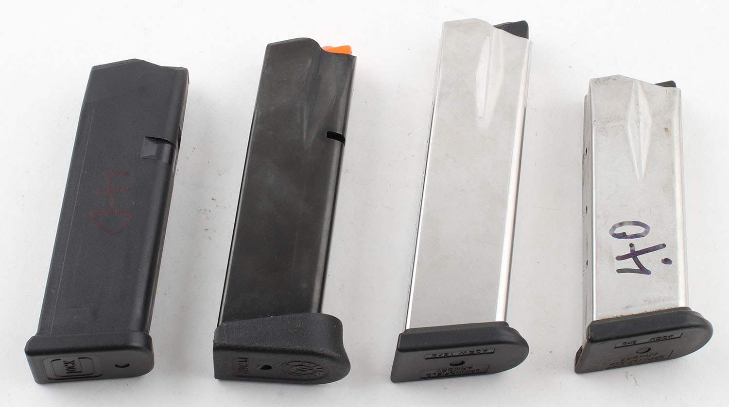 Lot of 4 .40 S&W cal pistol mags, various manufacturers. Grade: Excellent - Value: 30 to 60