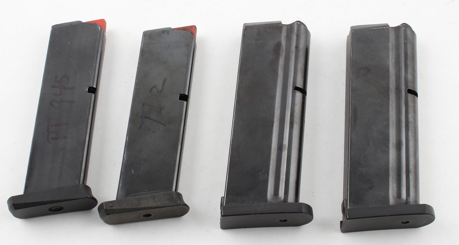 Lot of 4 pistol mags, (2) Pro Mag .50 cal., and (2) .45 cal made in Brazil mags. Grade: Excellent ++ - Value: 50 to 100