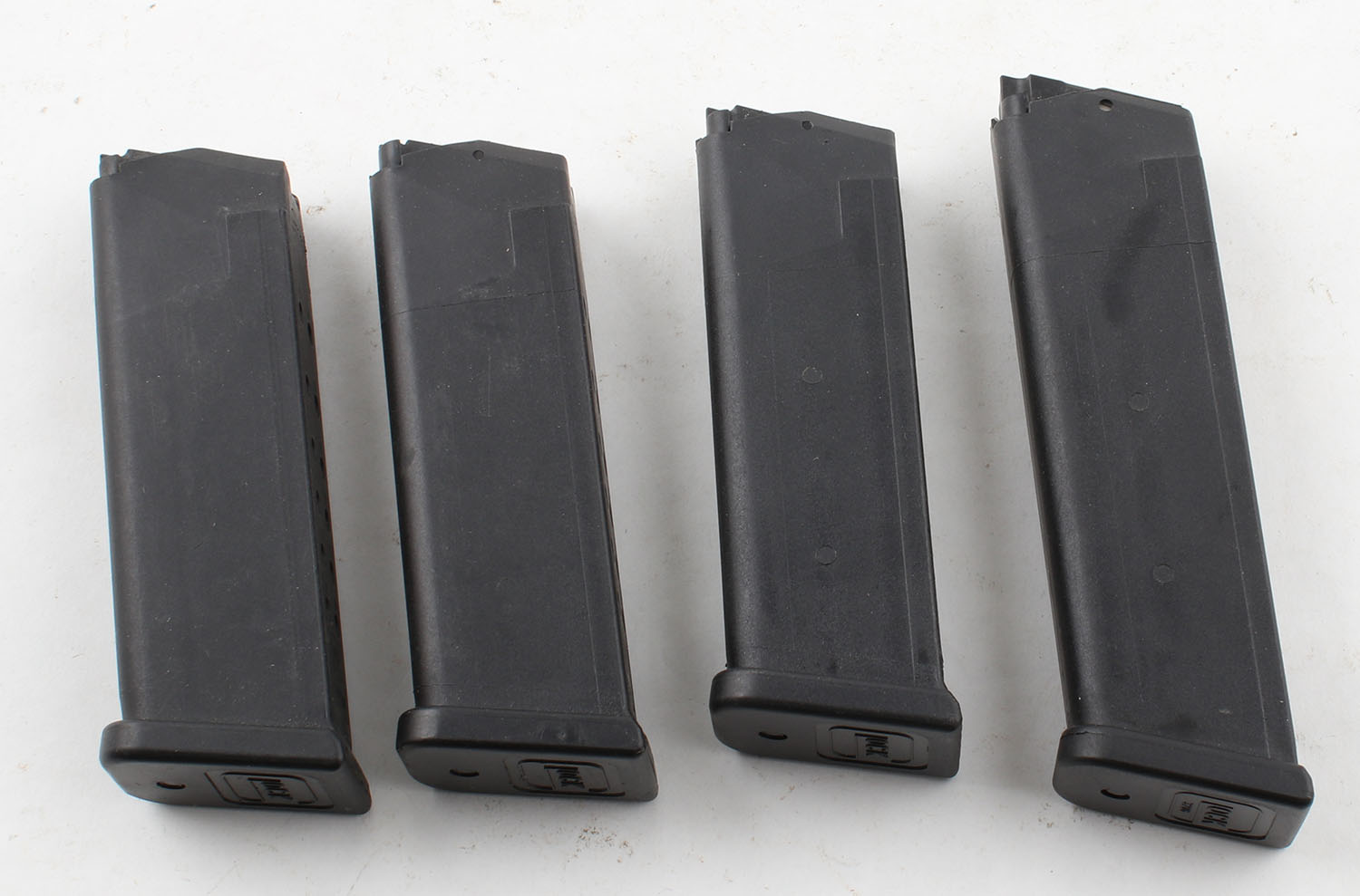 Lot of 4 Glock pistol mags, 9mm and 45 GAP. Grade: Excellent - Value: 20 to 50