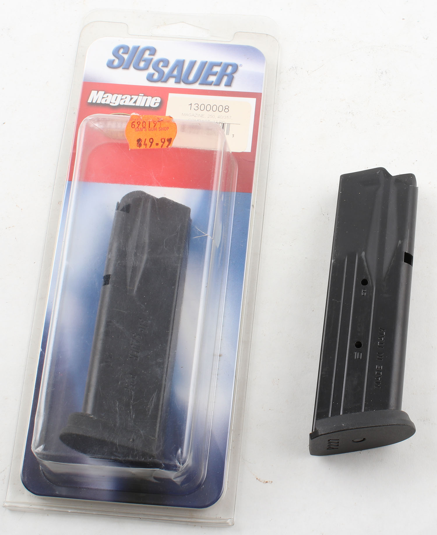 Lot of 2 Sig Sauer pistol mags, .45 cal and .40/357 cal. Grade: Excellent - Value: 16 to 50