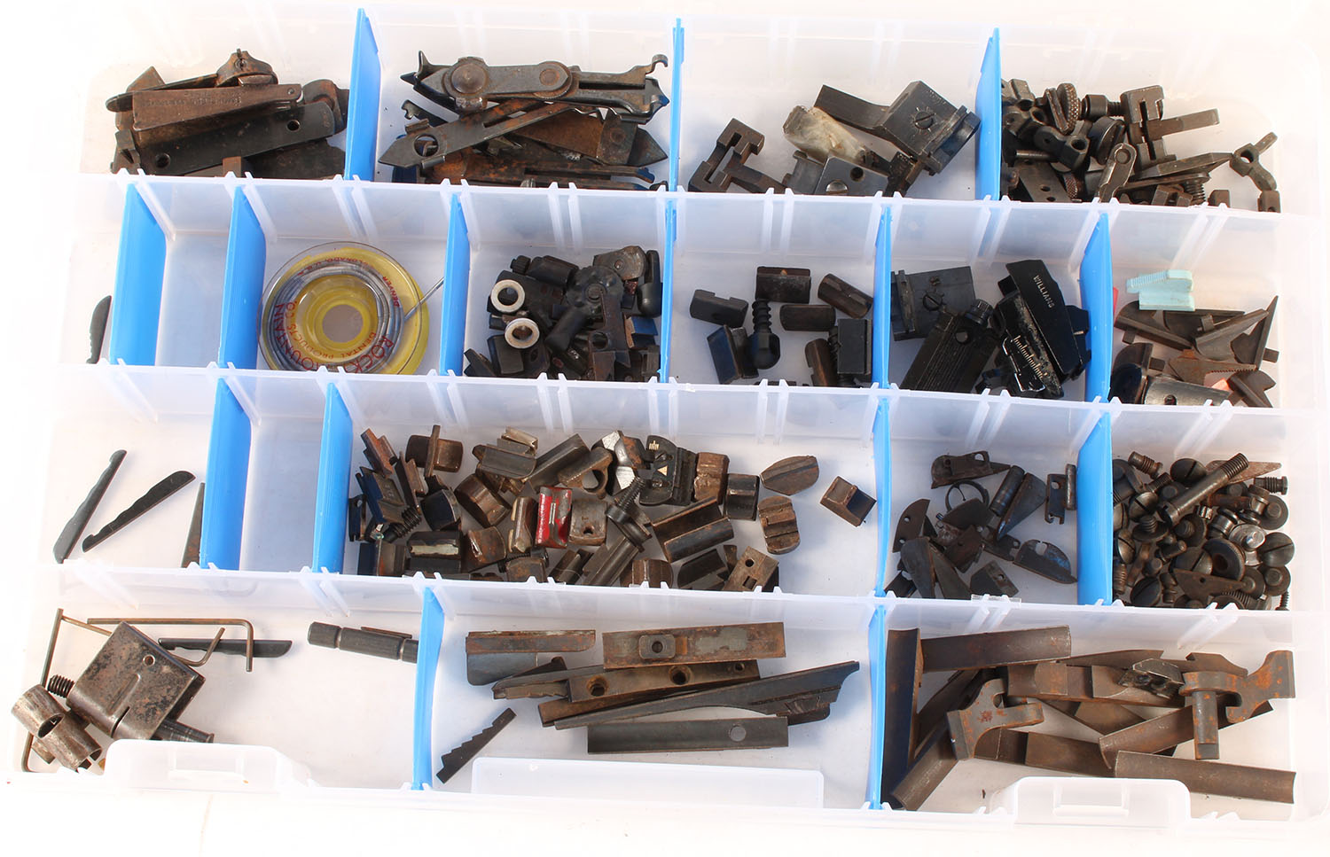 Very Large lot of sights and sight parts, in plastic case in separate compartments. Grade: Very Good ++ - Value: 40 to 150