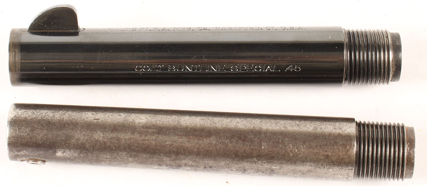 Lot of 2 Colt .45 cal pistol barrels, 1st Gen and Buntline. Grade: Very Good - Value: 50 to 100