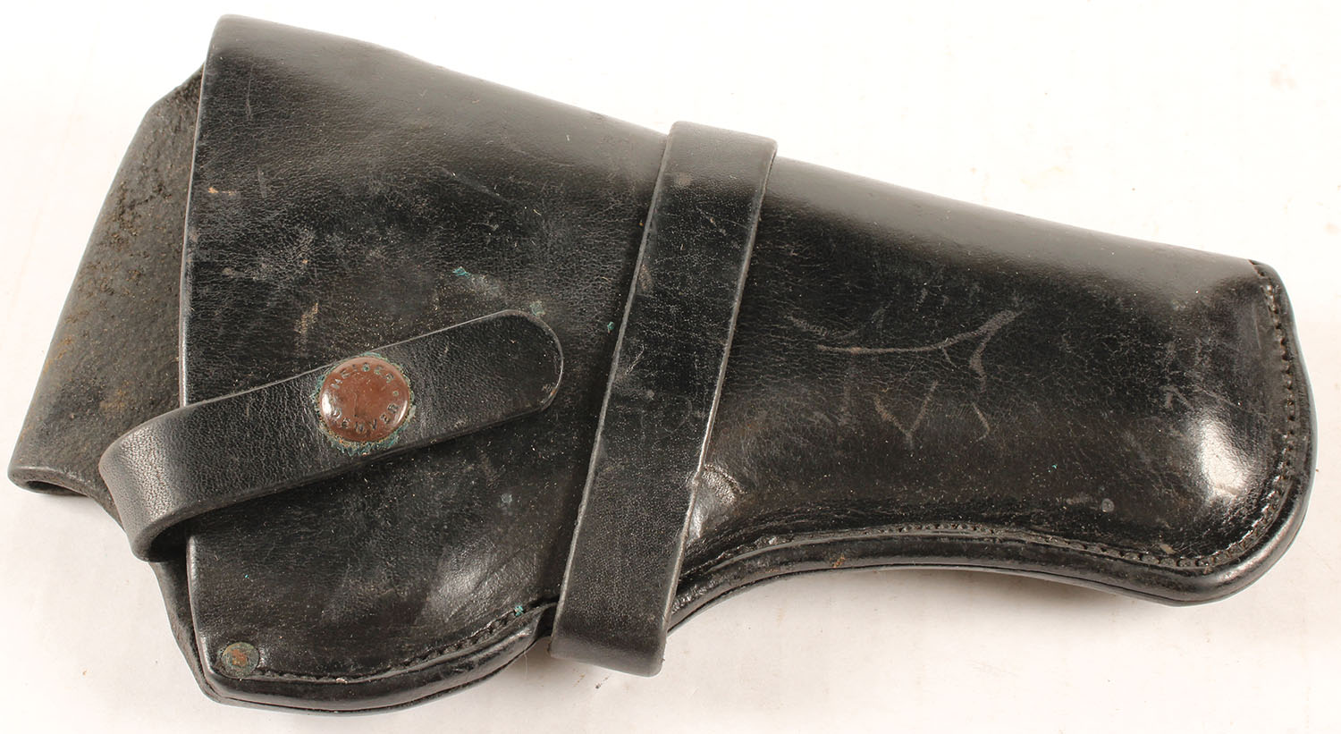 Heiser leather pistol holster, 4'' N Frame, #416, has age soiling. Grade: Very Good ++ - Value: 40 to 100