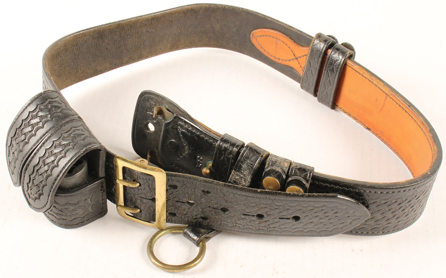 Tex Shoemaker Leather pistol belt #38 and holster has age soiling. Grade: Very Good ++ - Value: 10 to 50