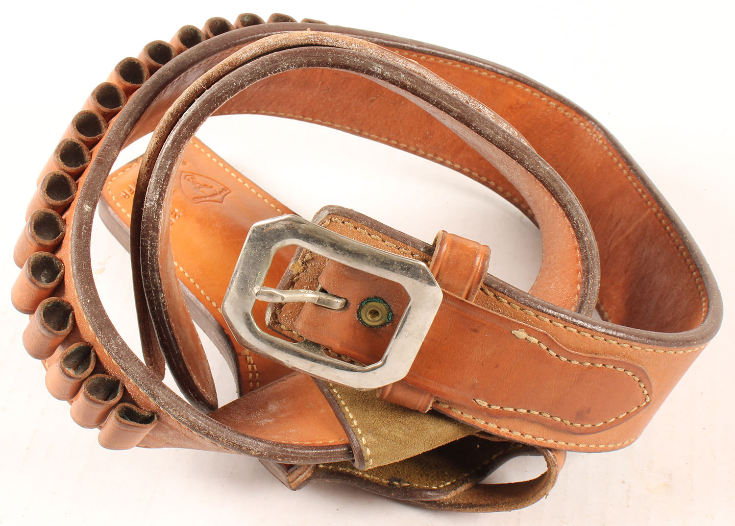 Leather ammo belt and holster, all solid. Grade: Excellent - Value: 20 to 60