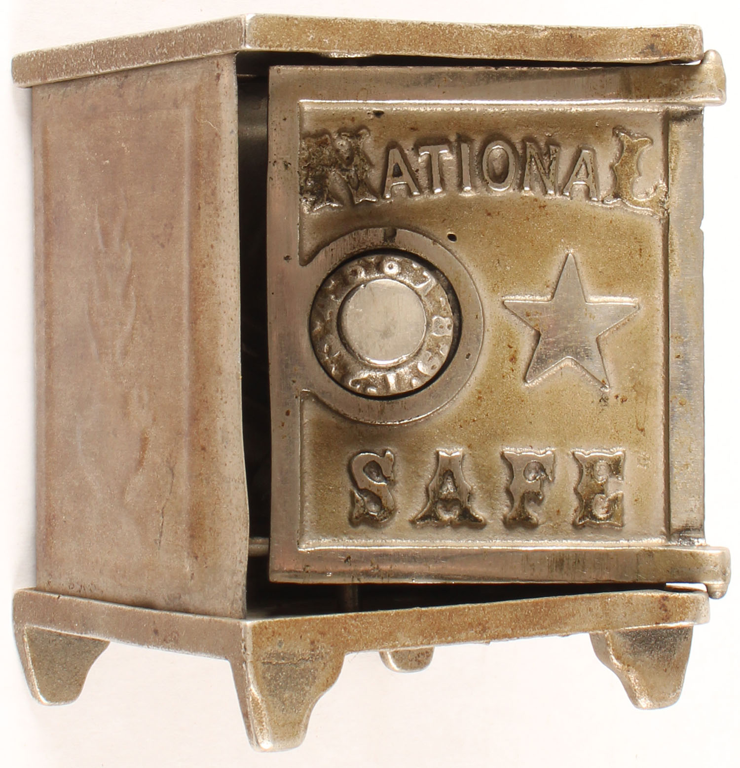 Rare salesman sample cast iron National coin safe still bank. Grade: Excellent - Value: 50 to 200