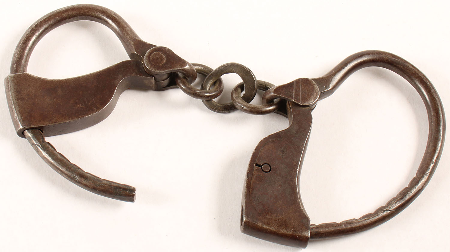 Unmarked handcuffs, some PATs but hard to read. Grade: Very good ++ - Value: 20 to 80