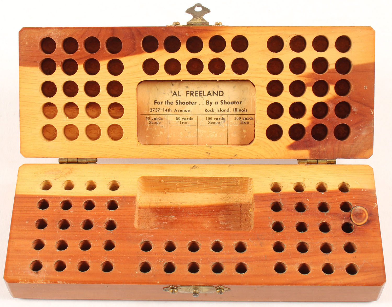 AL Freeland .22 comp. wood box, empty. Grade: Excellent - Value: 10 to 50