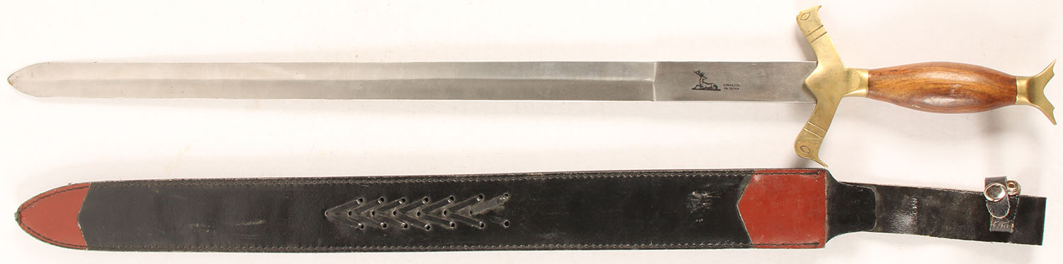 Vintage sword, 27'' blade length, wood handle, has sheath. Grade: Excellent - Value: 40 to 200