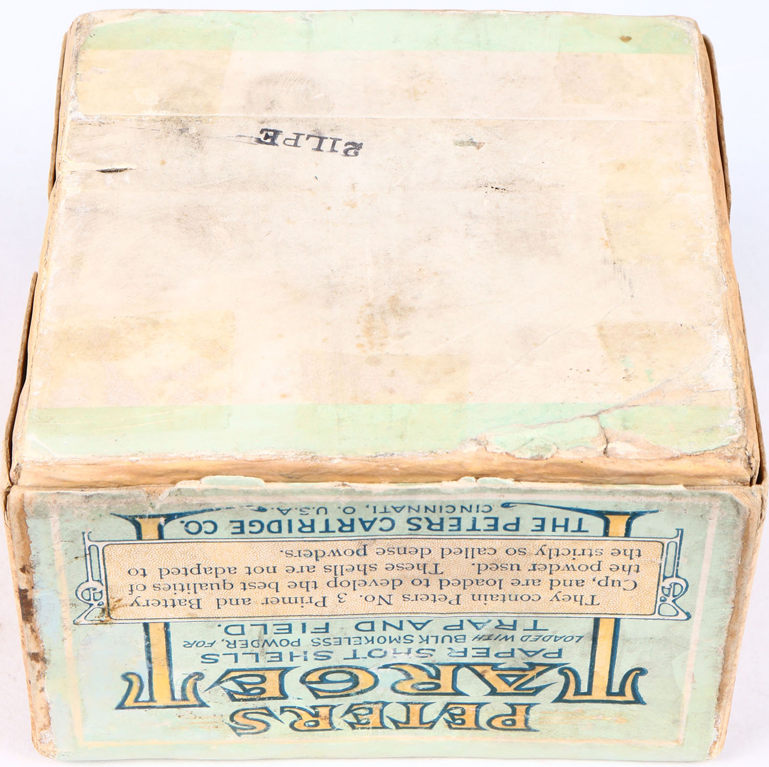 RARE!!! Peters Cart. Co. TARGET SHELLS, For Trap And Field, 10 Ga.! 2pc., Empty, shot size 1, buff box with multi colored label that pictures clay bird, box & label are solid, correct bottom, label is 100% intact and 100% original.* Grade: Excellent + - Value: 400 to 1200