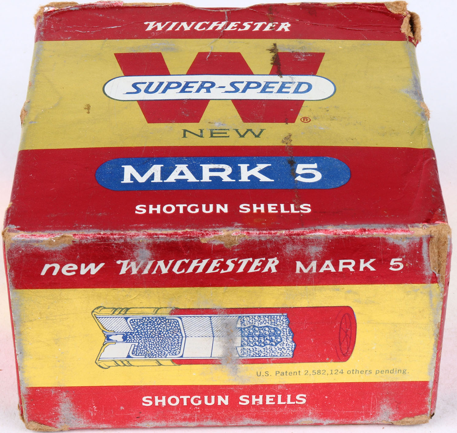 Western, Super-X Mark 5, 12ga., 2 3/4'', 1pc., Full with 6 being correct, shot size 2, multi-colored box, box is solid, shells are very good. Grade: Very Good ++ - Value: 10 to 30