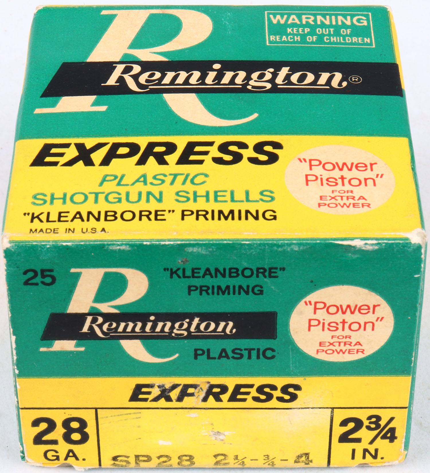 Remington, Express, 28ga., 1pc., Full, shot size 4, multi-colored box, shells are excellent. Grade: Excellent - Value: 10 to 30