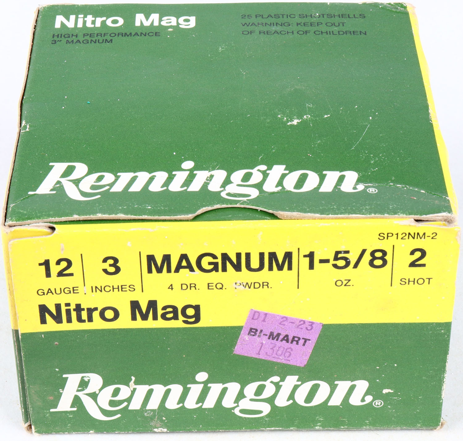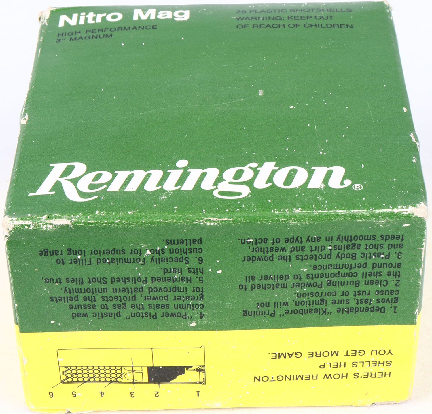 Remington, Nitro Mag, 12ga., 1pc., Partial 24rds, shot size 2, multi-colored box, shells are very good. Grade: Excellent - Value: 10 to 20