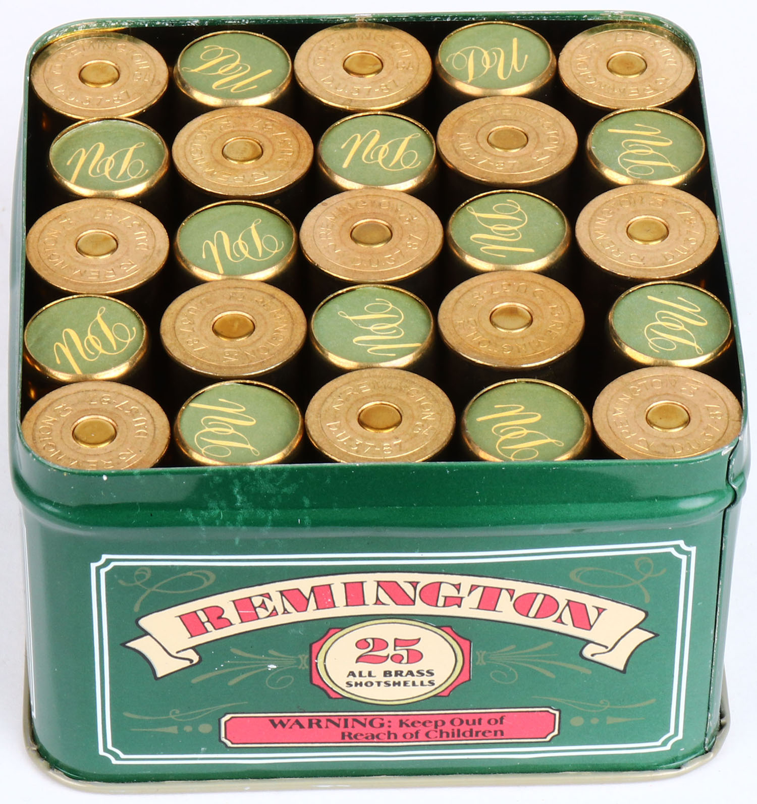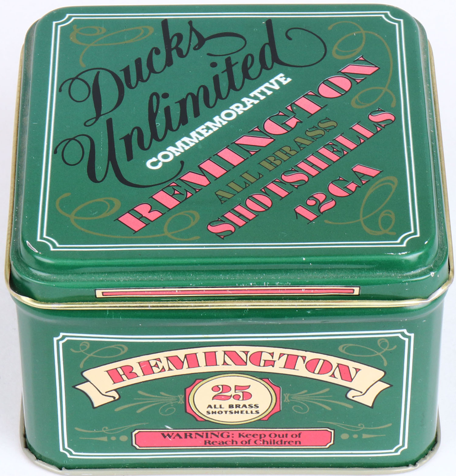 Duck Unlimited Commemorative Remington All Brass Shotshells 12ga., Full, Factory Insert, metal tin has excellent graphics, shells are MINTY. Grade: Excellent ++ - Value: 30 to 100