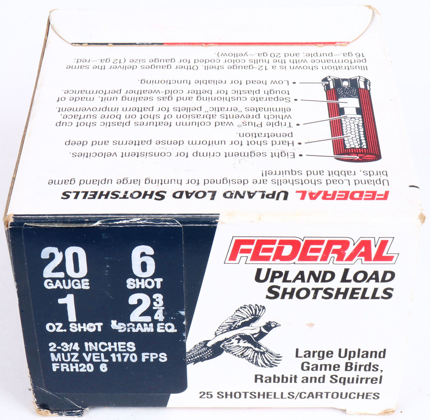 Federal, Upland Load, 12ga., 1pc., Full, shot size 6, multi-colored box, shells are excellent. Grade: Excellent - Value: 10 to 20