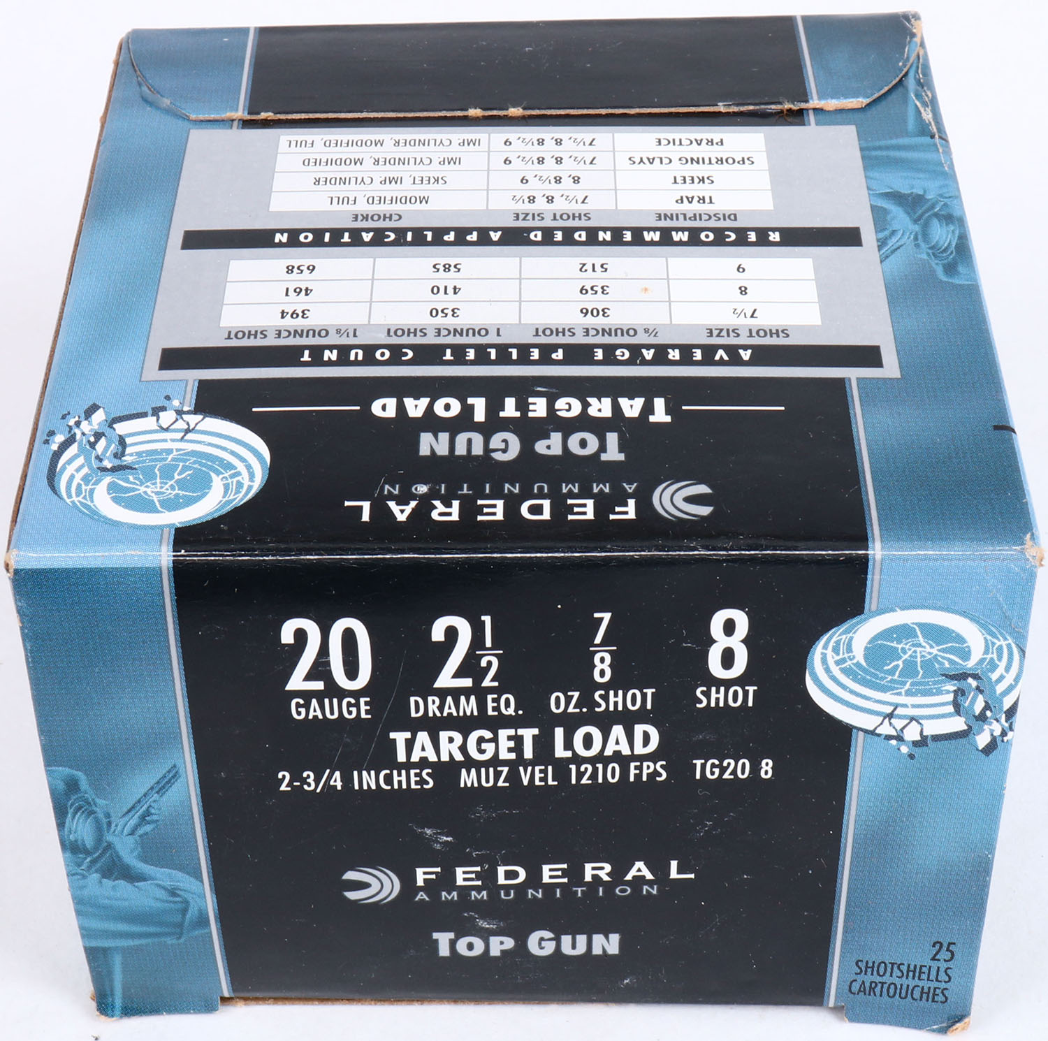 Federal, Target Load, 20ga., 1pc., Full, shot size 8, multi-colored box, shells are excellent. Grade: Excellent - Value: 10 to 20