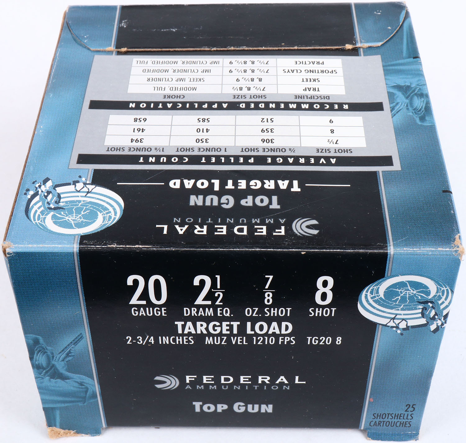 Federal, Target Load, 20ga., 1pc., Full, shot size 8, multi-colored box, shells are excellent. Grade: Excellent - Value: 10 to 20