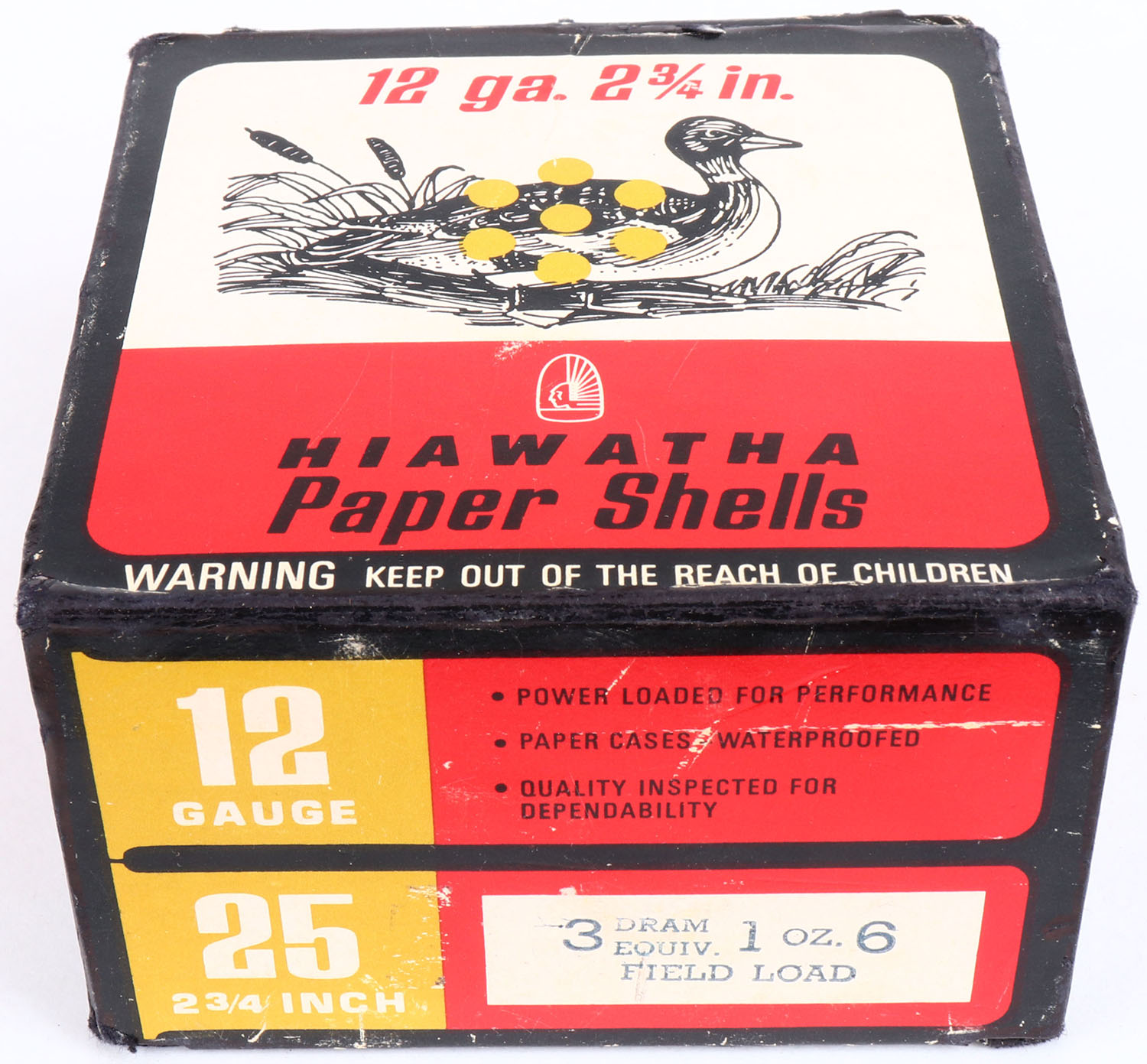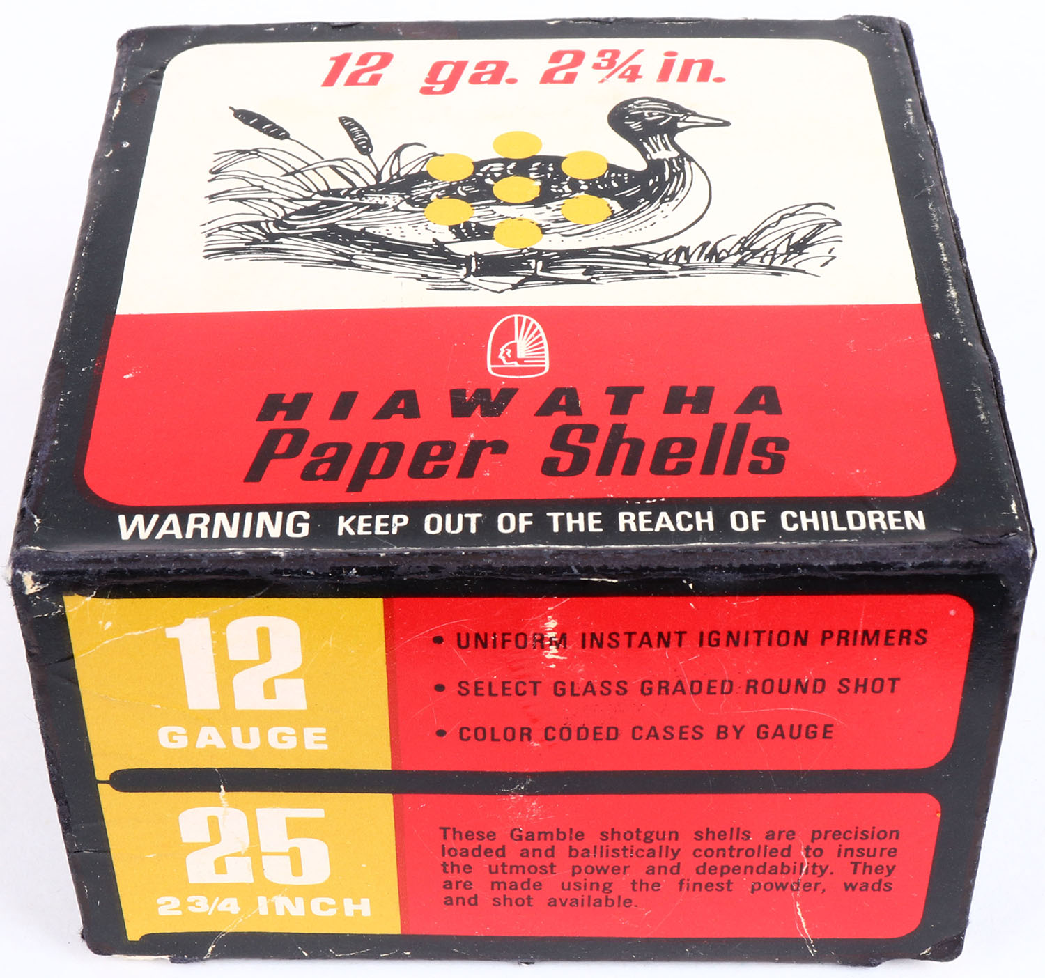 Gambles, Hiawatha, 12ga., 1pc., Full, shot size 6 Field Load, red, gold & black box, box is solid with great colors, shells are excellent. Grade: Excellent + - Value: 10 to 30