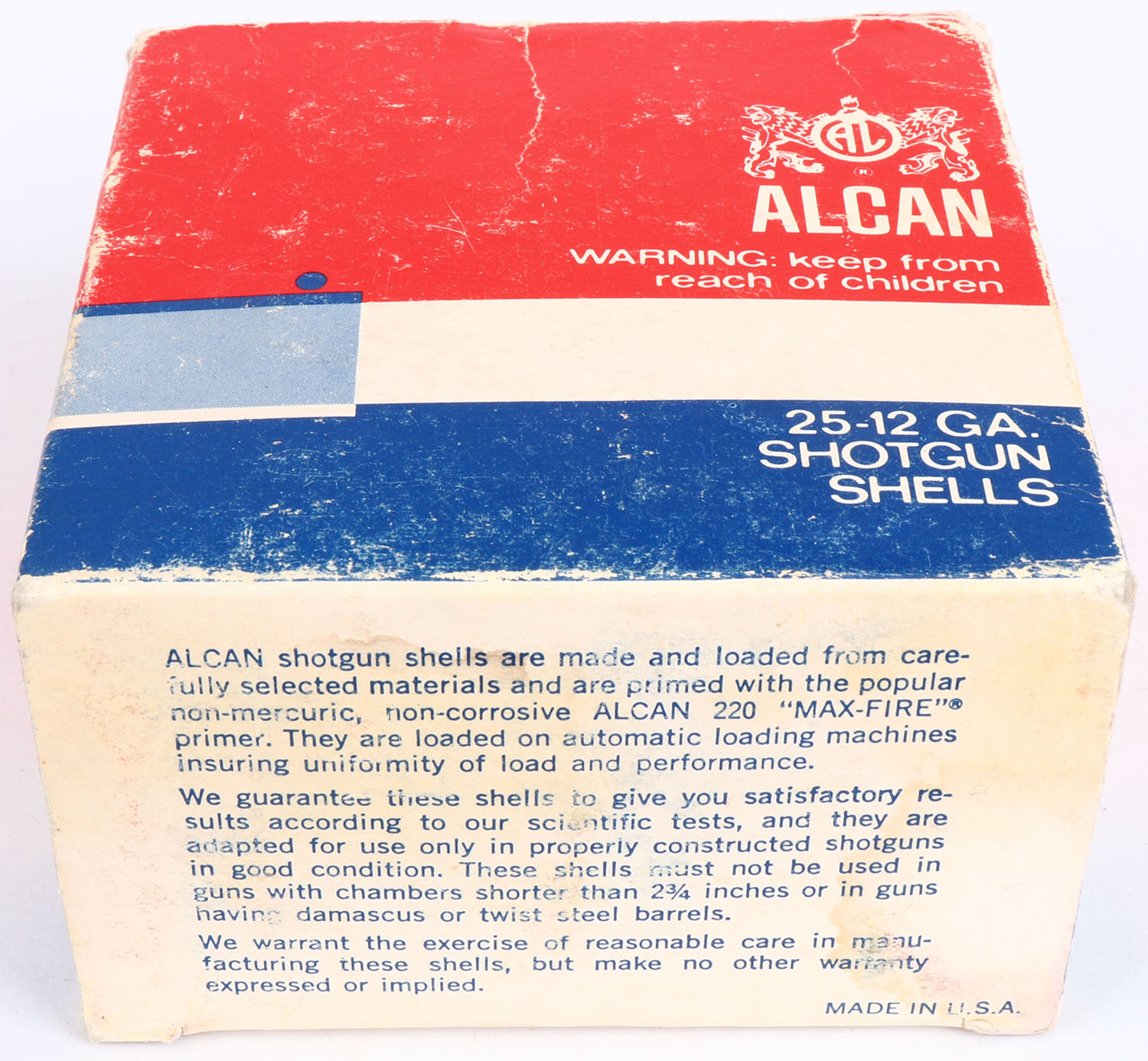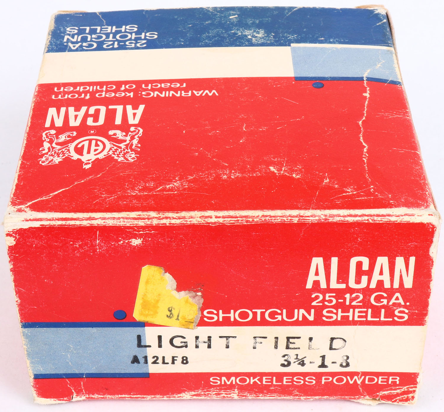 Alcan, 12ga., 1pc., Full of incorrect brands, shot size 8 Light Field, multi-colored box, box is very solid, shells are very good. Grade: Excellent - Value: 4 to 20