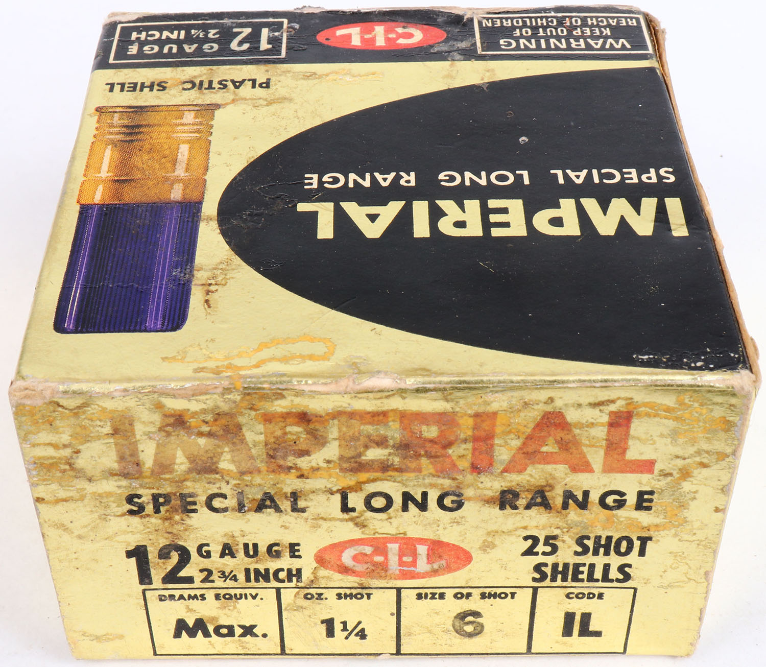 Imperial, 12ga., 1pc., Full, shot size 6, multi-colored box, box is very solid, shells are excellent. Grade: Excellent - Value: 10 to 20