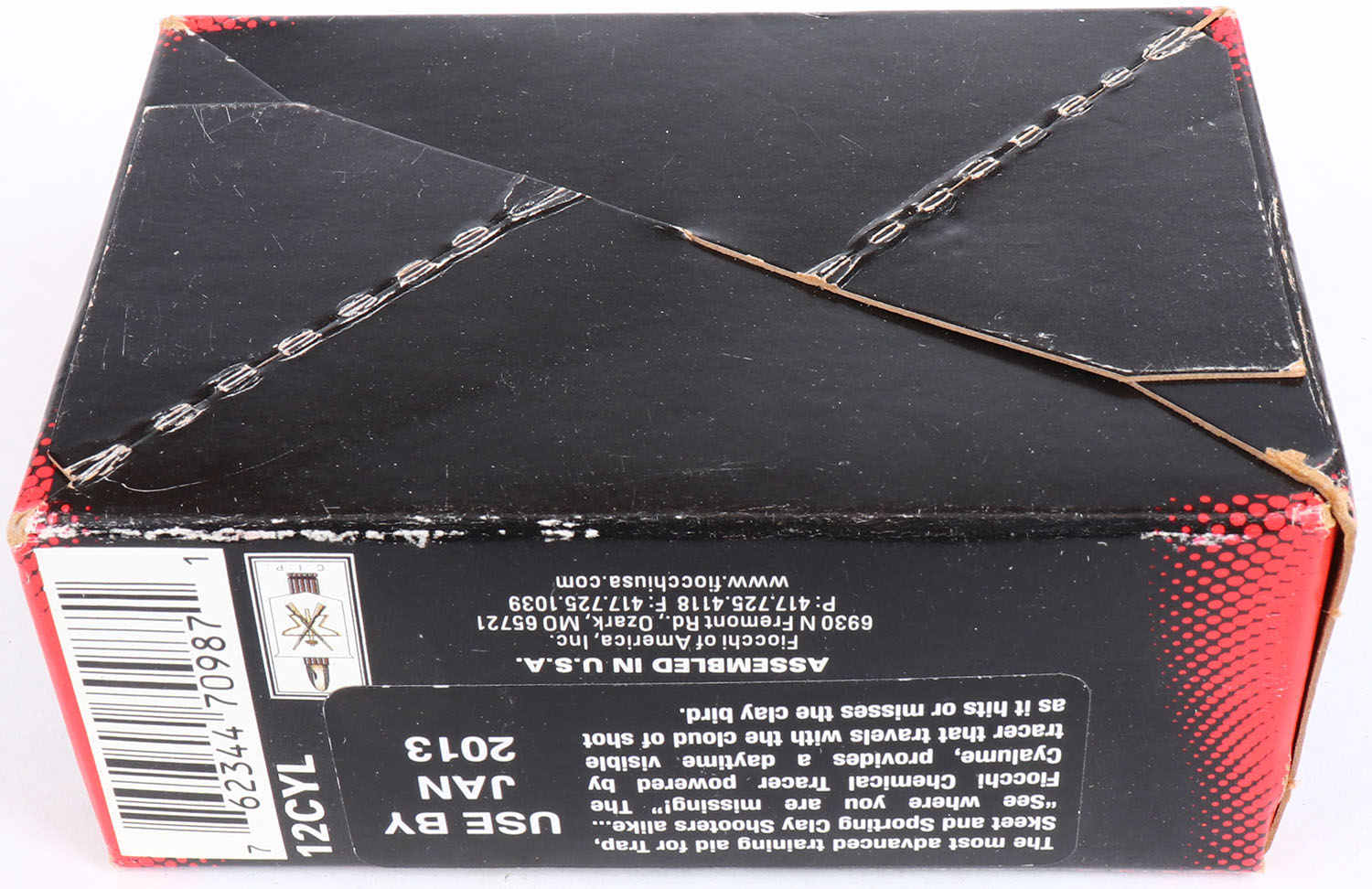 Fiocchi, 12ga., 1pc., Full, shot size 8 Chemical Tracer, multi-colored box, box is very solid, shells are excellent. Grade: Excellent + - Value: 4 to 20
