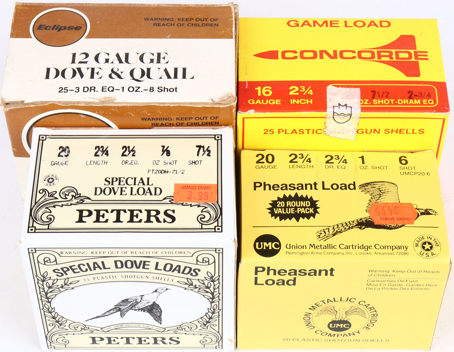 Lot of (4) appears full Shotshell Boxes. Grade: Excellent - Value: 2 to 60