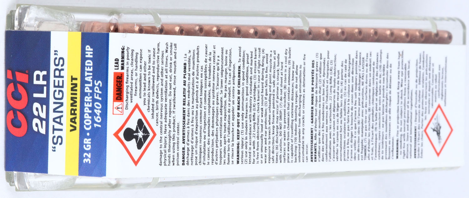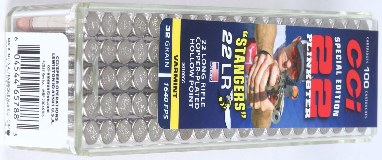 CCi, 22 Plinkster Special Edition ''Stangers'', .22 Long Rifle, 32 Grain Copper-Plated Hollow Point, 1640 FPS, FULL & SEALED, 2pc. Clear plastic tray with blue red & yellow label, box is MINT, label is mint, ammo is mint. Grade: MINT - Value: 10 to 50