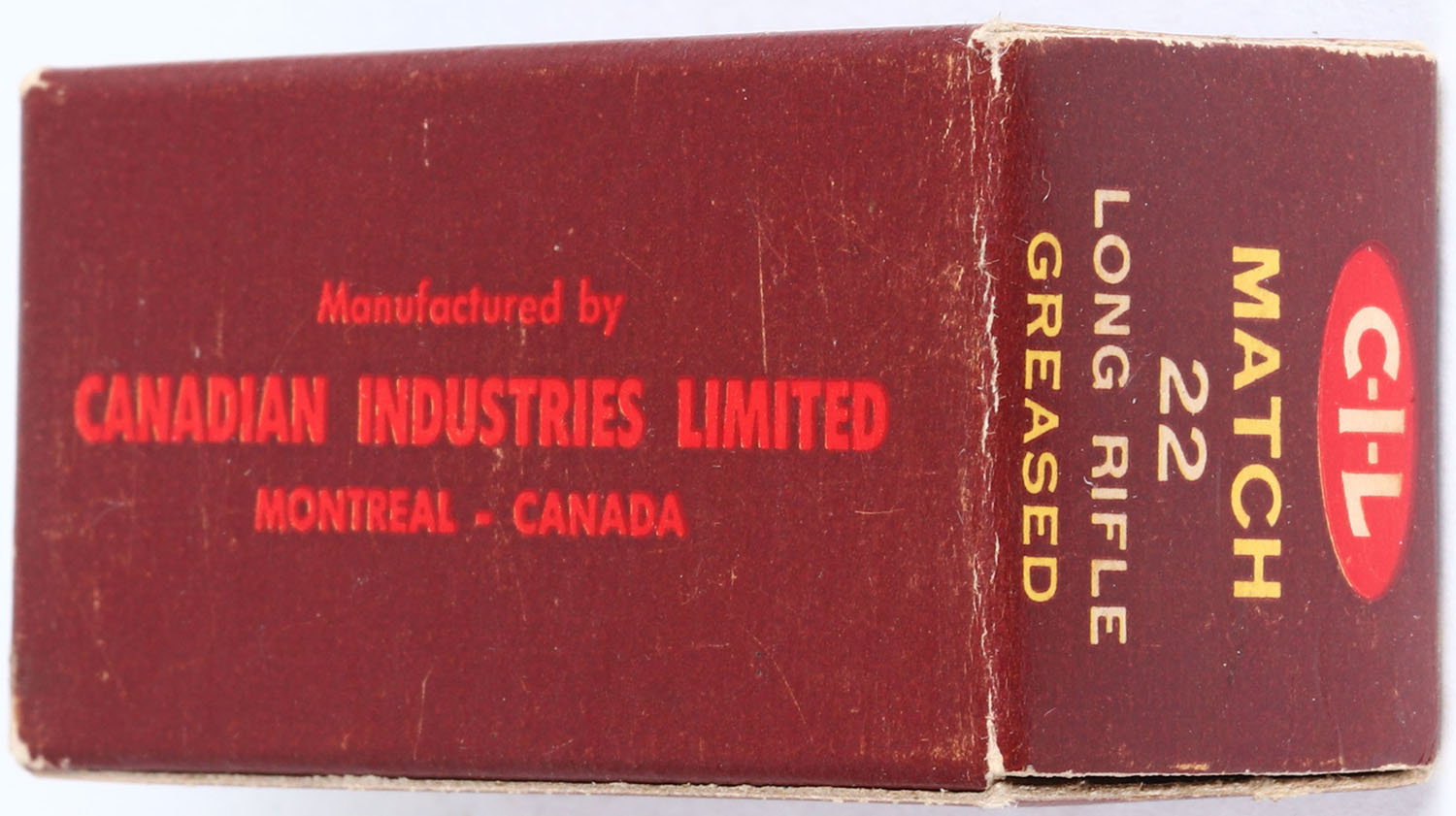 CIL, Match, .22 Long Rifle, Greased, RHWeb: CIL-5 LR-5, Full, 1pc. Brown yellow & red box, box is near mint with excellent to minty color, only very minor shelf wear, corners are sharp, edges are crisp, end flaps are solid, ammo is excellent. Grade: Excellent ++ - Value: 10 to 50