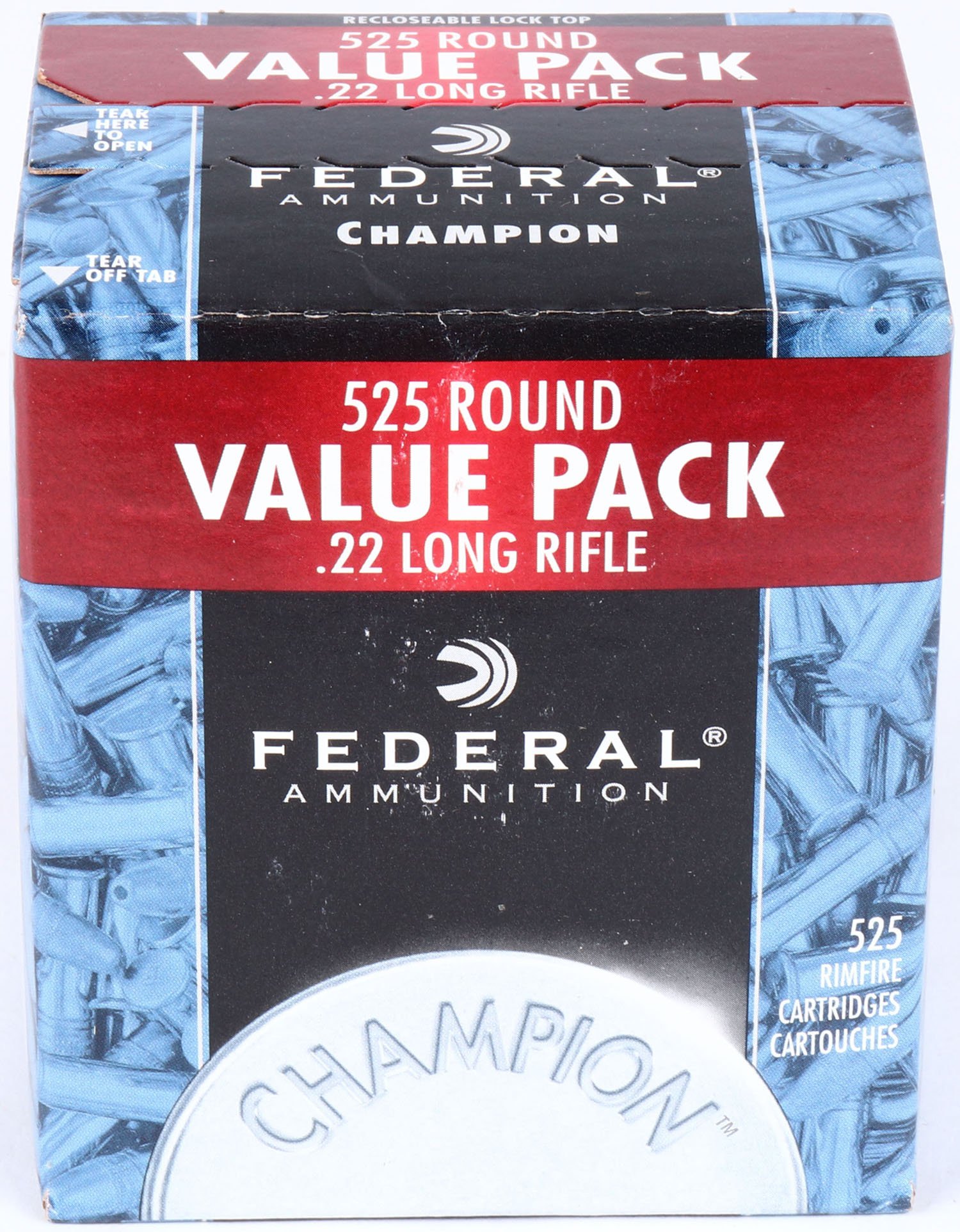 Federal, Champion Value Pack, .22 Long Rifle, 36 Grain Copper Plated Hollow Point, FULL & SEALED, 1pc. Blue black & red bulk box, box is MINT with minty color, sharp corners, crisp edges. Grade: MINT - Value: 20 to 40