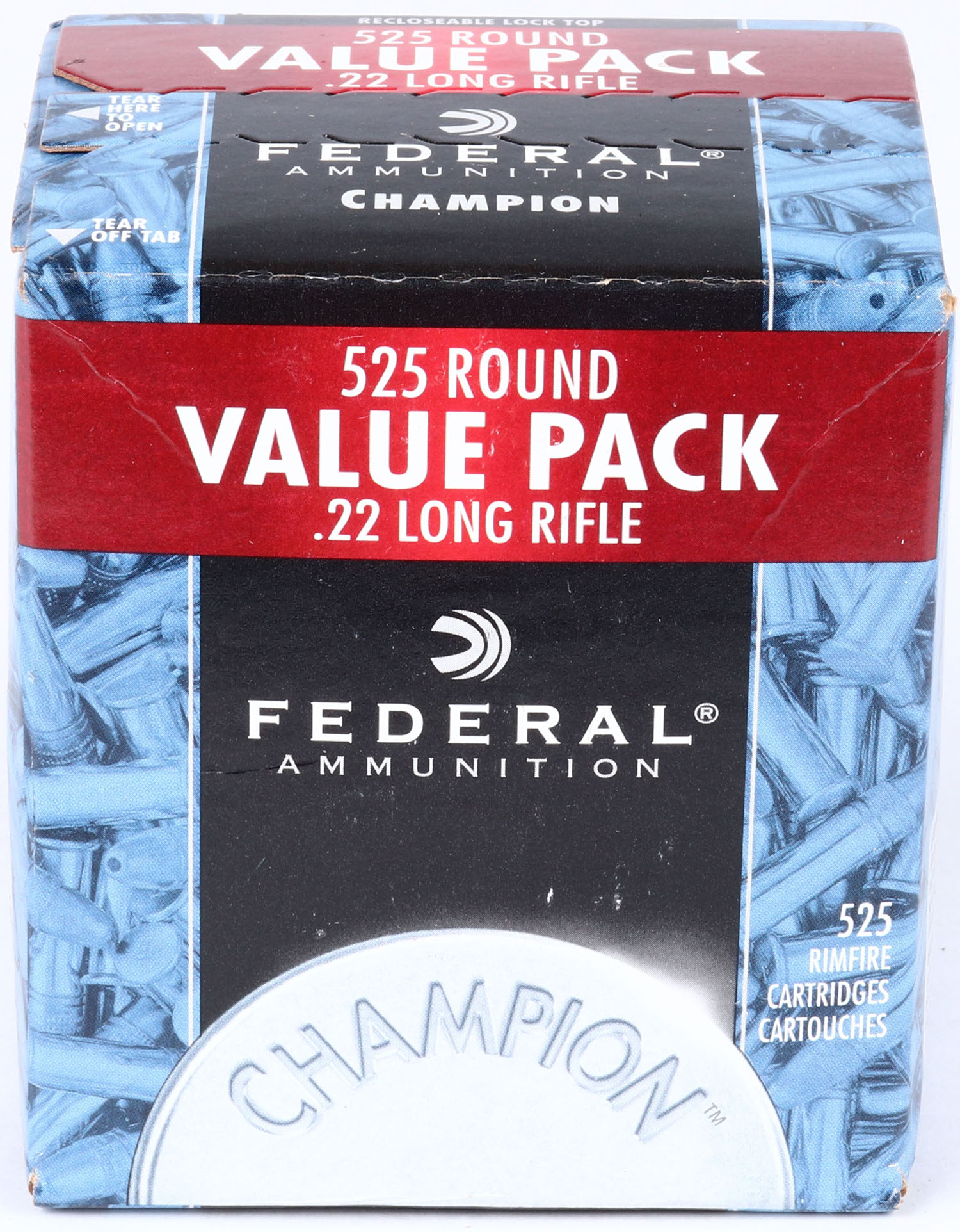 Federal, Champion Value Pack, .22 Long Rifle, 36 Grain Copper Plated Hollow Point, FULL & SEALED, 1pc. Blue black & red bulk box, box is MINT with minty color, sharp corners, crisp edges. Grade: MINT - Value: 20 to 40
