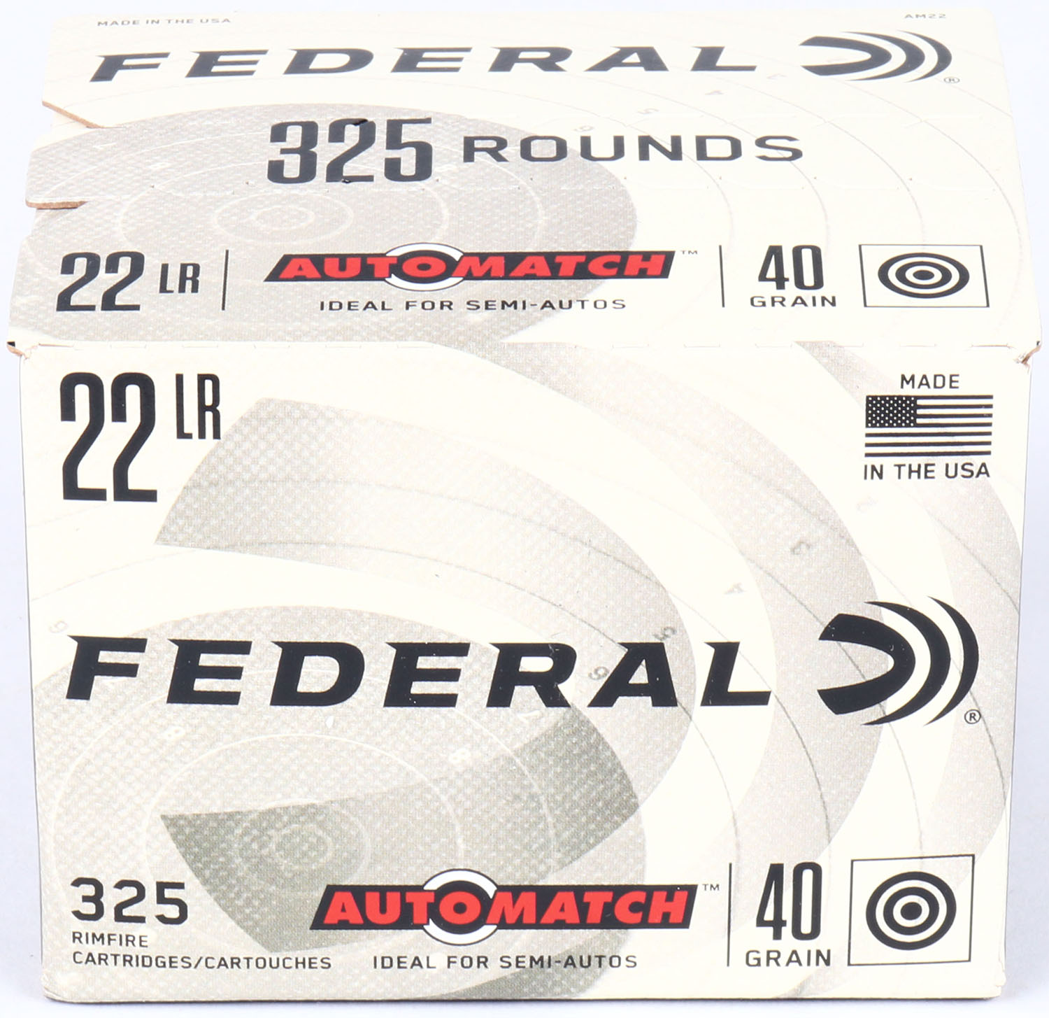 Federal, Auto Match, .22 Long Rifle, Ideal For Semi-Autos, FULL & SEALED, 325rds. 1pc. White black & gray box, box is MINT with minty color, corners are sharp, edges are crisp. Grade: MINT - Value: 30 to 60