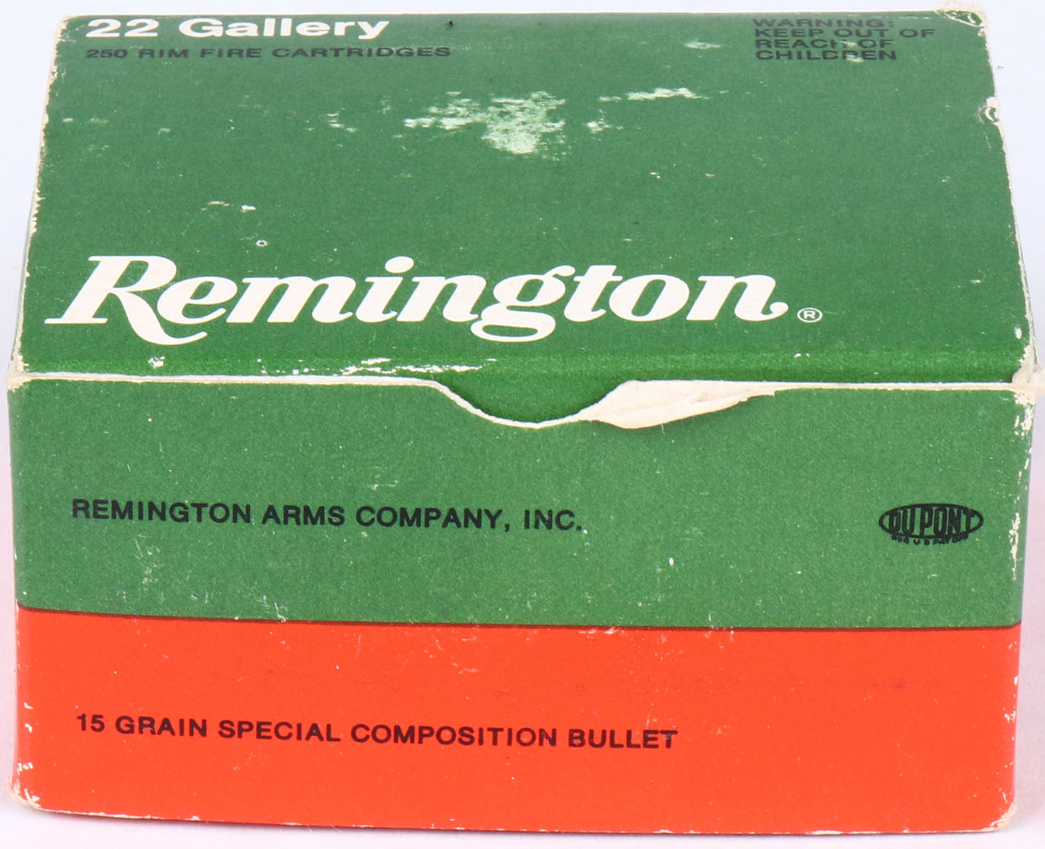 Remington, .22 Short, Gallery Spatter-Less, Full, 250rds. 1pc. Green red & white bulk box, box is near mint with minty color, only very minor shelf & corner wear, edges are crisp, top flap is rigid, ammo is minty. Grade: Excellent ++ - Value: 20 to 60