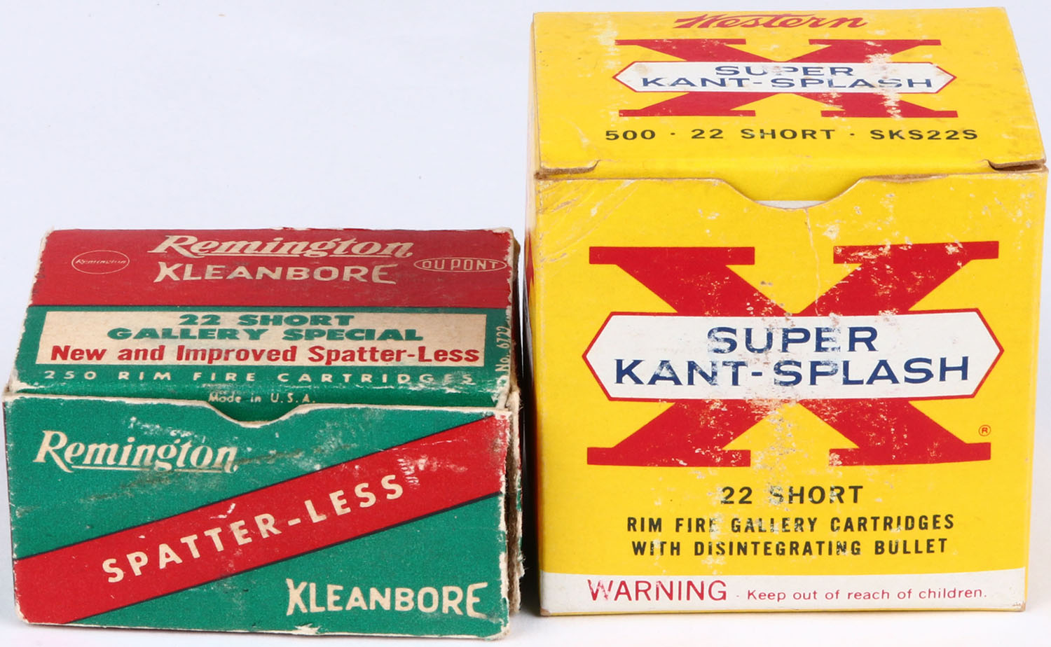 Mixed Mfg., lot of (2) Empty Gallery bulk boxes, .22 Short, boxes are solid, Remington box has seam split on front, excellent color, shelf wear. Grade: Very Good ++ - Value: 10 to 100