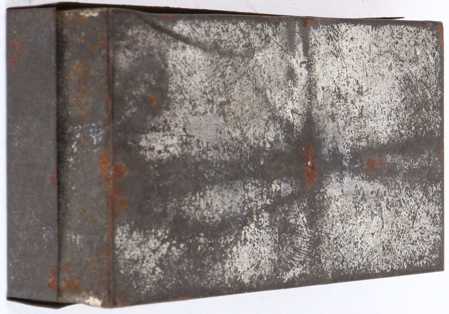 Shamrock Brand, Pin Fire, 5mm Ball, Revolver Cartridges, Partial 33rds. 2pc. Metal tin box with green top label, label has very good color, minor age soiling, rust showing through label, tin is solid with good color, some rust throughout, ammo is very good to excellent. Grade: Very Good + - Value: 30 to 120