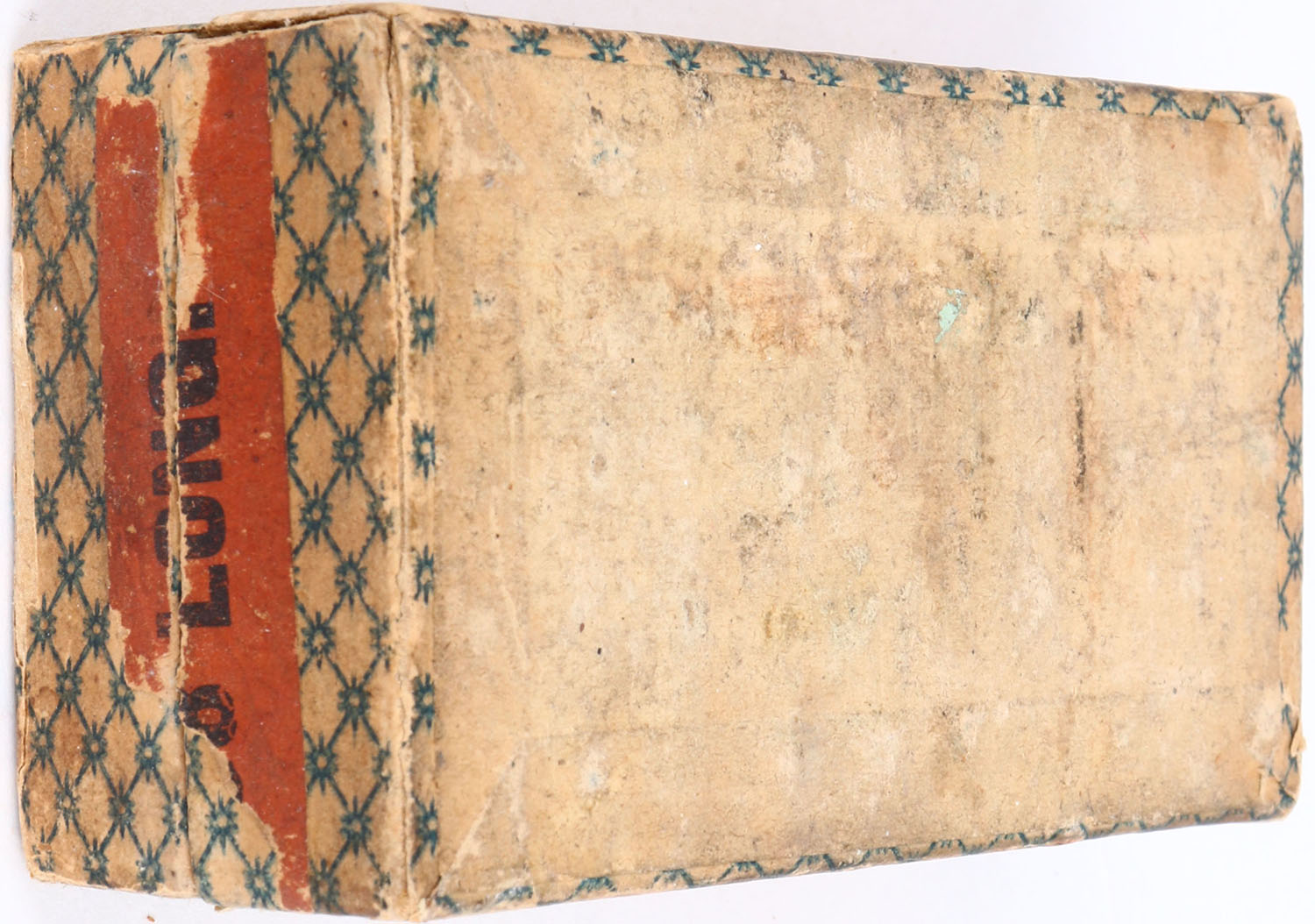American Metallic, Special Target Cartridges, .38 Long, Full, 2pc. Blue & white patterned box with gray/white top label & orange side sealing band, box is solid with good to very good color, age soiling, staining to top, some shelf wear, minor edge & corner wear, vertical seam splits to bottom of right end, side sealing band is 75% intact, ammo is very good. Grade: Very Good + - Value: 50 to 200